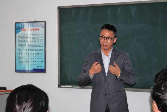 管理系党总支书记师建龙首先概括了习近平新时代中国特色社会主义思想的核心内容,阐述了新时代中国特色社会主义思想各个部分的概念内涵和实践外延,从党的十九大新的角度对“五位一体”、“中国梦”、“四个全面”、“五大发展理念”、“四个伟大”和“新时代主要矛盾”等理论进行了深入的解读和学习。师书记强调十九大会议主题“不忘初心 牢记使命 高举旗帜 团结奋进”,中国共产党的初心和使命是“为中国人民谋幸福、为中华民族谋复兴”,我们还应该坚持“总体国家安全观”、“一国两制、一个中国”、“构建人类命运共同体”和“站起来——富起来——强起来”的发展主线,全力以赴全面实现社会主义现代化和中华民族的伟大复兴。