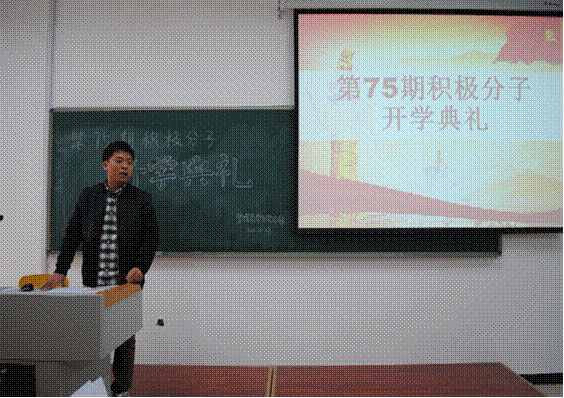 典礼首先安排了各积极分子学习国际歌,整个典礼在激情澎湃的氛围下展开。首先,郭老师就培训班开班做了动员讲话。他强调了培训的重要性,培训机会的来之不易。会上,全体积极分子认真听讲,情绪饱满。
