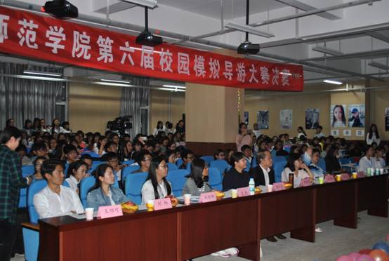 至此,第六届校园模拟导游大赛圆满结束。本次大赛丰富了同学们的校园文化生活,并且通过模拟导游的实践,加深了同学们对导游工作的了解,同时也为同学们以后的发展奠定了坚实的基础。