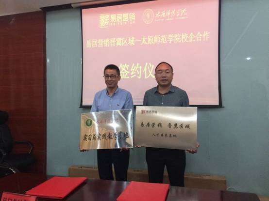 王川龙副院长代表学校向易居营销授予了“太原师范学院实习与实践教学基地”的牌匾,易居营销晋冀区域管理总经理孙卫华先生也代表公司向太原师范学院授予了“易居营销晋冀区域人才培养基地”的牌匾。