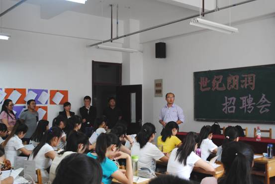2015年7月2日下午2:30,在我院明理书院E426教室举行了“世纪朗润校园专场招聘会”。参加此次招聘会的有管理系分团委书记郭凯路老师、山西世纪朗润房地产经纪有限公司策划部总监、人力资源部招聘组成员,本次招聘会提供销售类、商管类、策划类和品管类4种类别实习岗位。